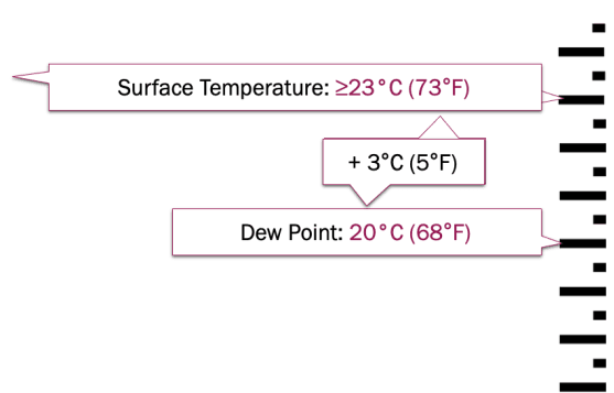 Both the surface and air temperatures are the first conditions to check when assessing the risk of moisture formation on a substrate. Surface temperature and air temperature are often different. This is especially true when work is accomplished outdoors. At night, steelwork usually radiates heat and is cooled below air temperature. During the day, it absorbs heat and is usually warmer than the air temperature.