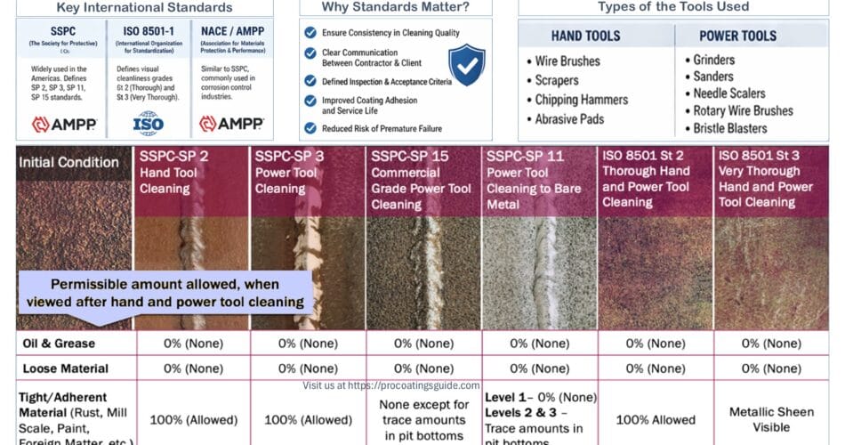 ▶️ The visual reference guides for hand and power tool cleaning include: