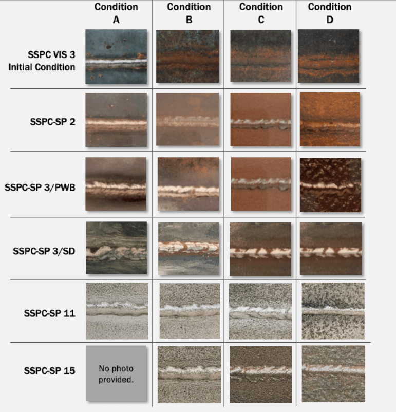 Commercial Grade Power Tool (SP 15) written standards. - ISO 8501-1: Preparation of Steel Substrates Before Application of Paints and Related Products