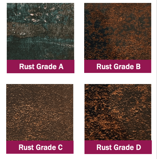 ISO 8501-1 defines four initial condition or rust grades of unpainted steel: